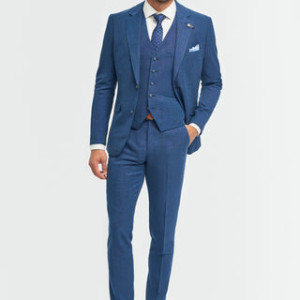 Cavani Wells Slim Fit 3pc Suit – Blue- Tweed