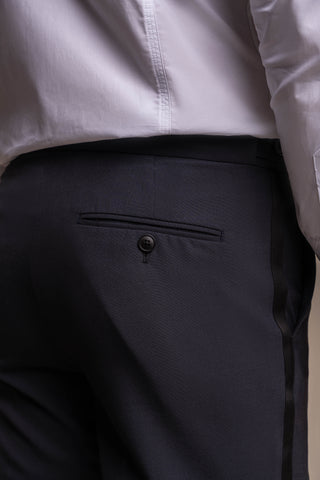 The Midnight Navy Two-Piece Suit blends timeless elegance with modern tailoring. Featuring a sleek shawl collar and single-button closure, this wool-blend suit is fully lined for a polished finish. Designed with versatility and comfort in mind, it’s the perfect choice for formal events, refined gatherings, or evening sophistication. The Midnight Navy trousers showcase a streamlined silhouette, elegant detailing, and impeccable tailoring for a look that exudes modern refinement.